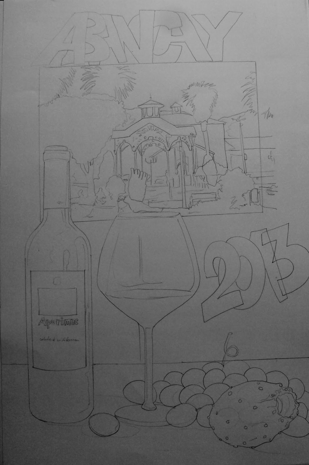 Para realizar este tipo de trabajos lo primero que se realiza es la ejecución del dibujo, pondremos como ejemplo un dibujo de temática de bodegón: